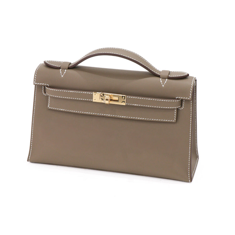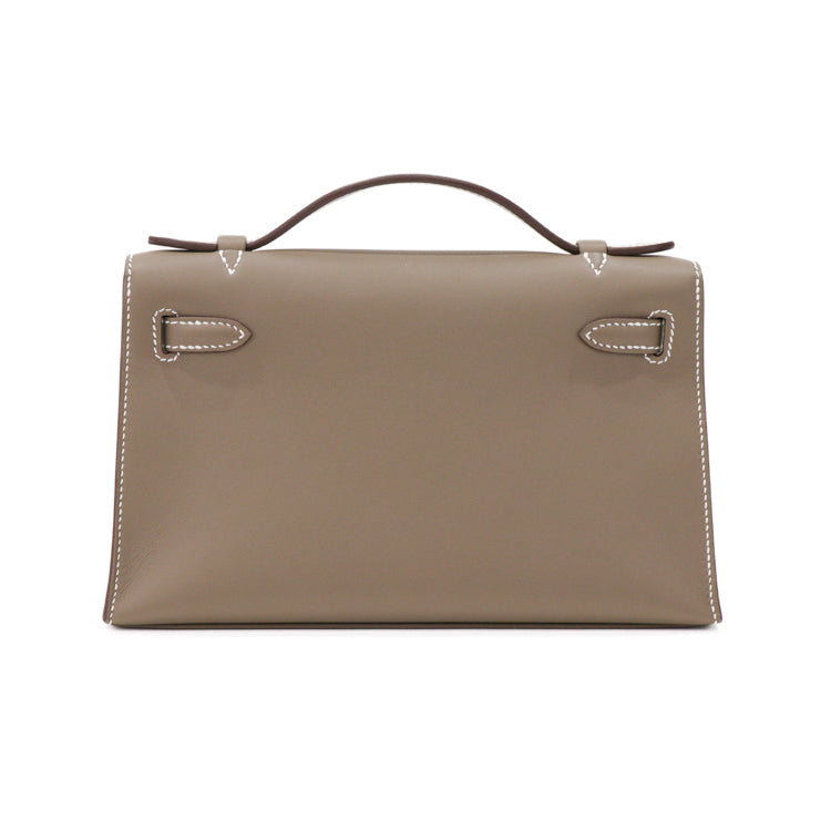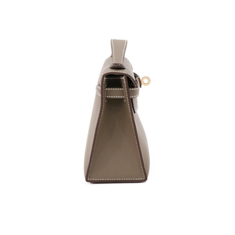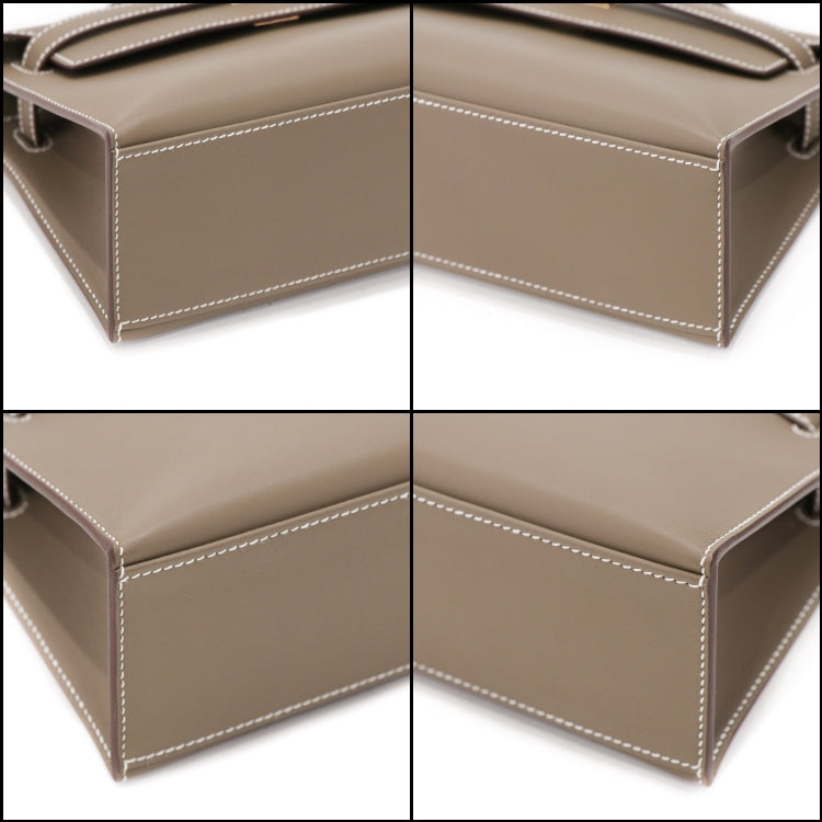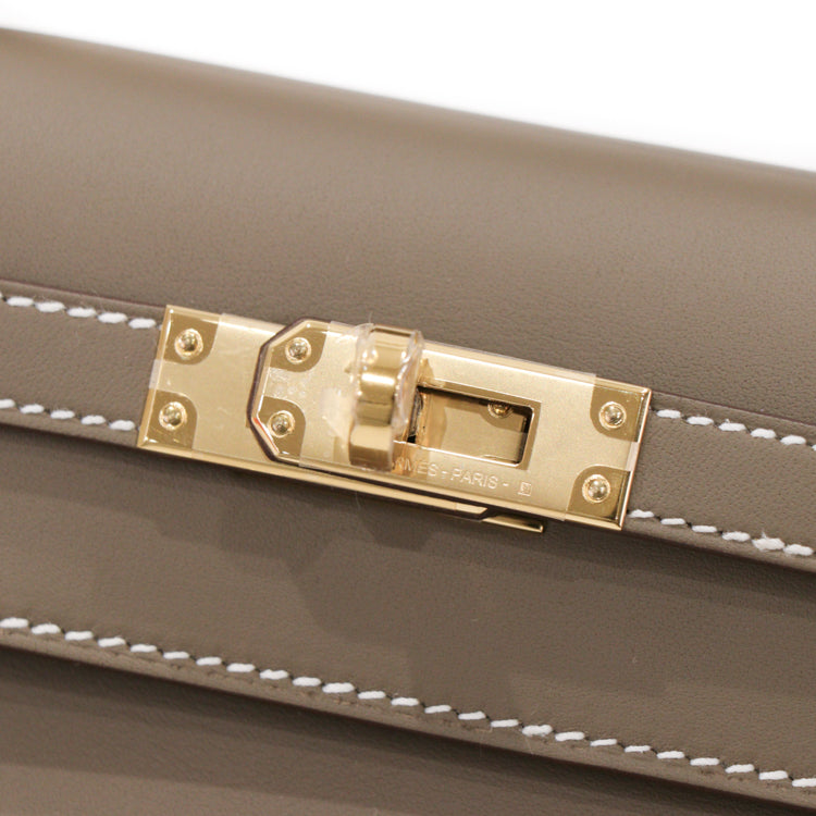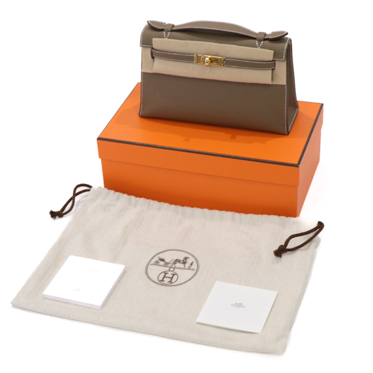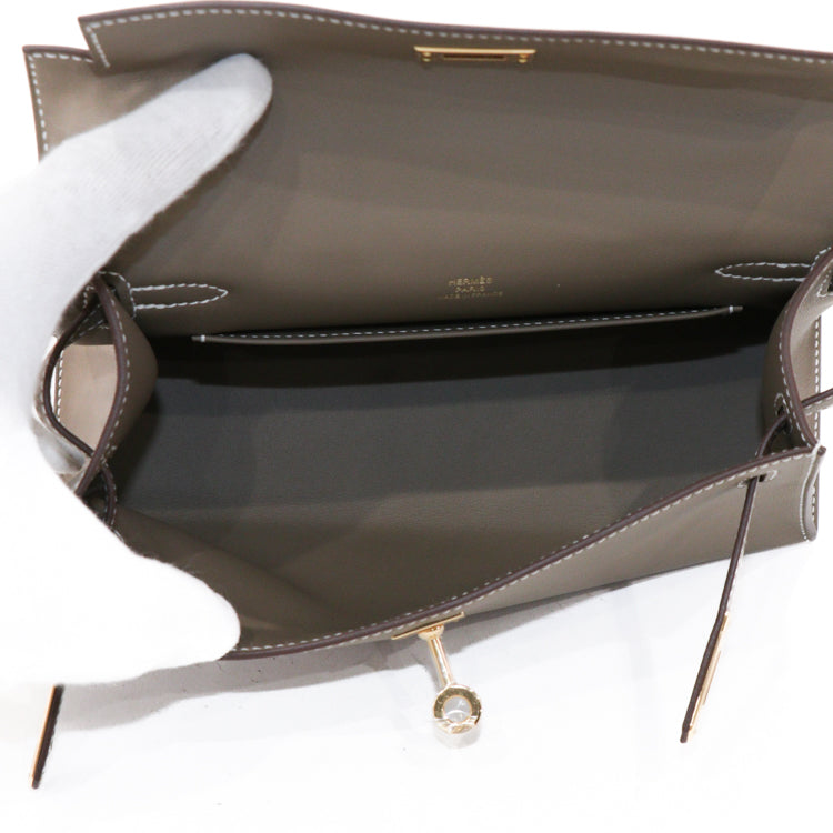 Hermes Pochette Kelly Mini Swift Leather Etoupe W Hand bag